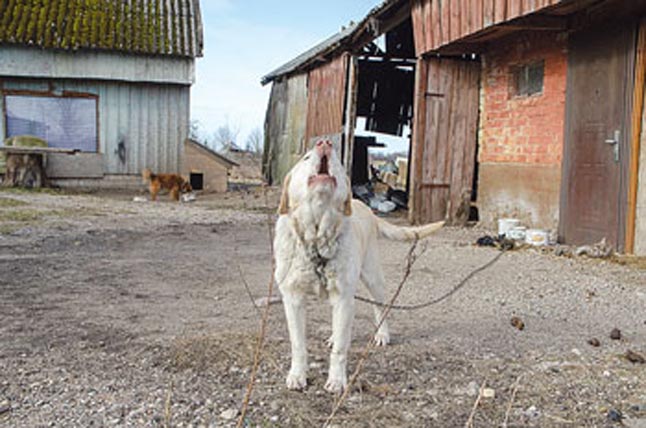 Vyras negailėjo kandžių žodžių šunų savininkams, sakė, kad jie apsileidėliai, besikraustą iš vienos nebegyvenamos Laivių trobos į kitą, išmirus jų tikriesiems šeimininkams. Apie netvarką sodyboje liudija ne tiek besimėtantys seni baldai, daiktai, visoks šlamštas, o labiausiai – purvą po kojomis sumynę, nušiurę, grandinėmis prirakinti ir snukučiais užšalusiame puodo lede vandens vis ieškantys ištroškę keturkojai.