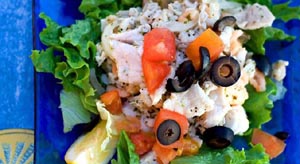Viską gerai sumaišykite, apšlakstykite alyvuogių aliejumi (šalto spaudimo) ir palikite pastovėti maždaug 2 valandoms.