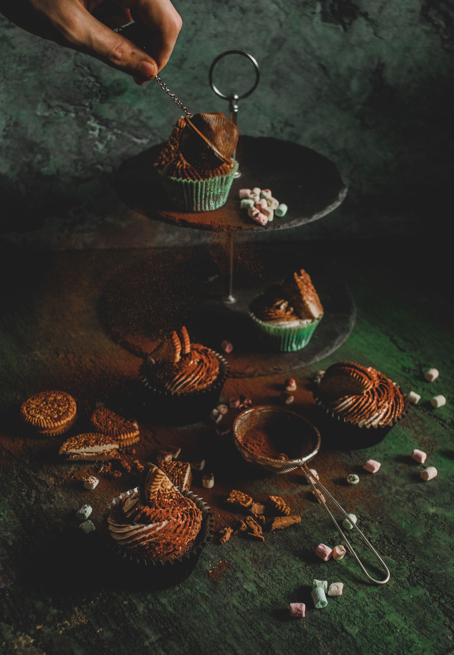 Atvėsusius keksiukus puošiame kremu, tai galite padaryti naudodami konditerinį maišelį su specialiu antgaliu. Jei šių įrankių neturite, kremą paprasčiausiai tepkite šaukštu. Dekoruoti galite namuose turimais saldėsiais, pavyzdžiui, sausainiais ar šokolado rutuliukais.