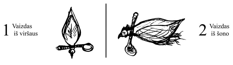 Naminio paukščio auka - užspaudžiant trachėją (vaizdas iš viršaus ir iš šono).