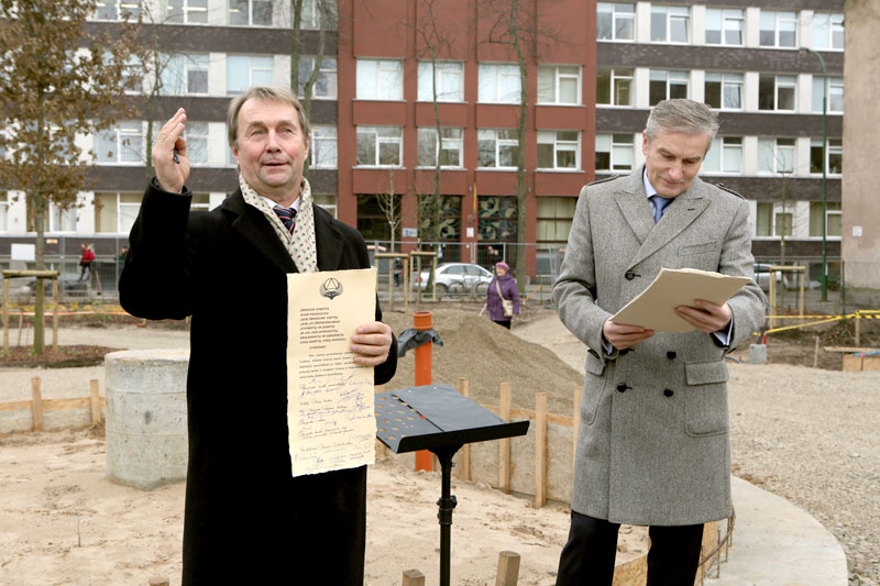 Vydūno sodą įrengiančios UAB "VVARFF" generalinis direktorius Vilmantas Bučius paskutinis užmūrijo kapsulę su priesaika ateities kartoms.