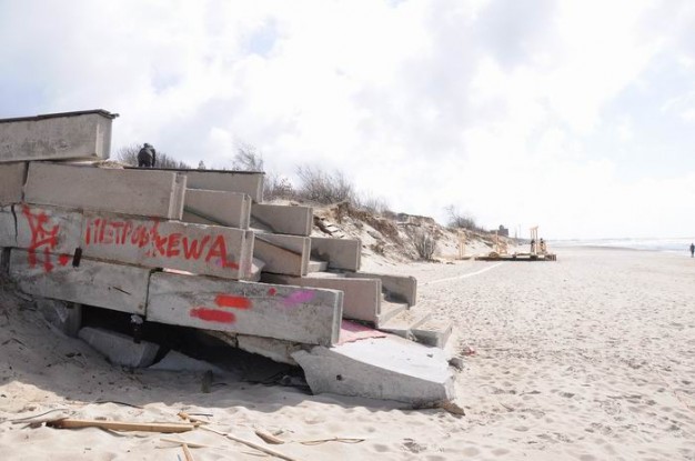 2011 metų lapkritį ir 2012-ųjų sausį audros gerokai nusiaubė paplūdimius. Nuslinkusios kopos nuniokojo betoninius laiptus ir nuovažą Neįgaliųjų pliaže, medinius laiptus Melnragėje ir Giruliuose. Vėtros gatvėje prie molo po audros atsivėrė buvusios senosios gelbėjimo stoties griuvėsiai. Ten yra susidariusi avarinė padėtis - laiptai nukritę. Būtina statybų laužą išvežti iki sezono pradžios, nes jis kelia grėsmę klaipėdiečiams ir miesto svečiams. Audros padarinių likvidavimo darbus norima atlikti per gegužę.