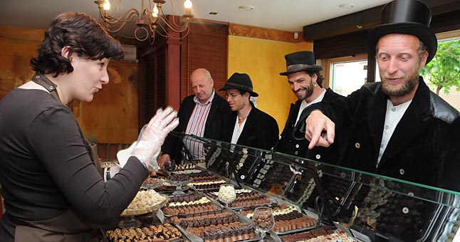 | PASALDINO GYVENIMĄ. Įspūdingai atrodančių vokiečių žavesiui neatsispyrė ir Karoso g. 9 įsikūrusios parduotuvės "AJ šokoladas Klaipėdoje" pardavėja, pavaišinusi juos karštu šokoladu. |