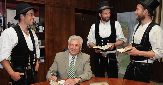 | PATVIRTINO. Vakar keliaujantys vokiečių amatininkai apsilankė ir pas Klaipėdos merą Rimantą Taraškevičių, idant jis savo antspaudu patvirtintų apie jų viešnagę uostamiestyje. |