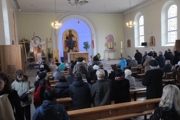 Žmonės gana gausiai rinkosi į Klaipėdos bažnyčias. "Kristus Prisikėlė!", - tokiais žodžiais šventų Velykų rytą sveikino vieni kitus tikintieji.