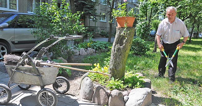 | Įgulos gatvės 24-ojo namo aplinką pavyzdingai tvarkantis Jonas Damašius prasitarė, kad įrengti gėlynai ne tik džiugina gyventojų akį, bet ir padeda apsaugoti žolynus nuo automobilių. |