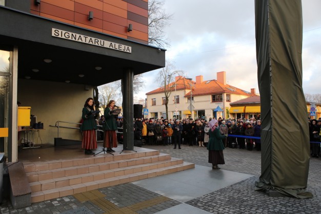 Šeštadienio popietę Palangoje buvo oficialiai pristatyta valstybės šimtmečiui skirta Signatarų alėja, kurią papuošė originali stela.