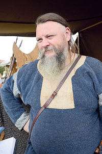| Senovės baltų kovų brolijos „Vilkatlakiai“ vadovas Arūnas Bugvilionis paaiškino, kad festivalyje jie pristatė XIV a. LDK ir Žemaitijos šarvuotę ir ginkluotę. |