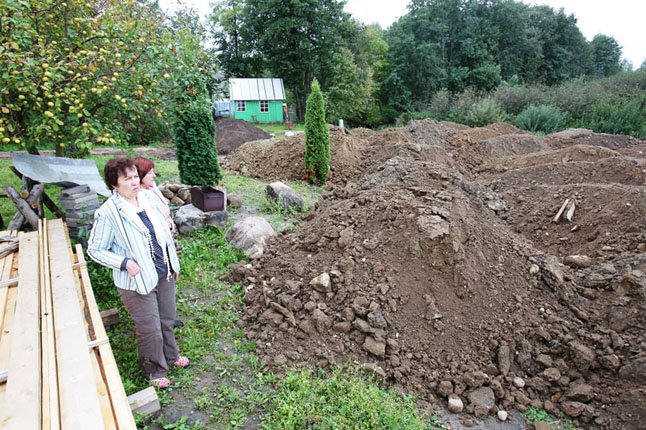 "Visą savaitę mūsų gatvele riedėjo sunkvežimiai, gal per kokį šimtą priekabų žemių iškratė prie upės. Iš mūsų gatvės liko vienos provėžos, purvynai. Nuo šios galingos technikos važinėjimo pasviro mano tvora. Negana to, įlaužė kanalizacijos šulinį, laimei, kad niekas į jį neįkrito", - pradėjo pasakoti Z. Mitkuvienė.