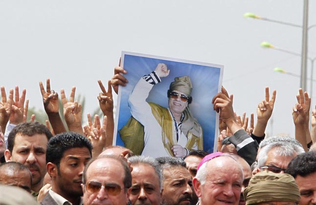 M. Kadafio sūnaus laidotuvėse dalyvavo keletas tūkstančių žmonių. M. Kadafis laidotuvėse nedalyvavo, bet atvyko kiti du jo sūnūs.
