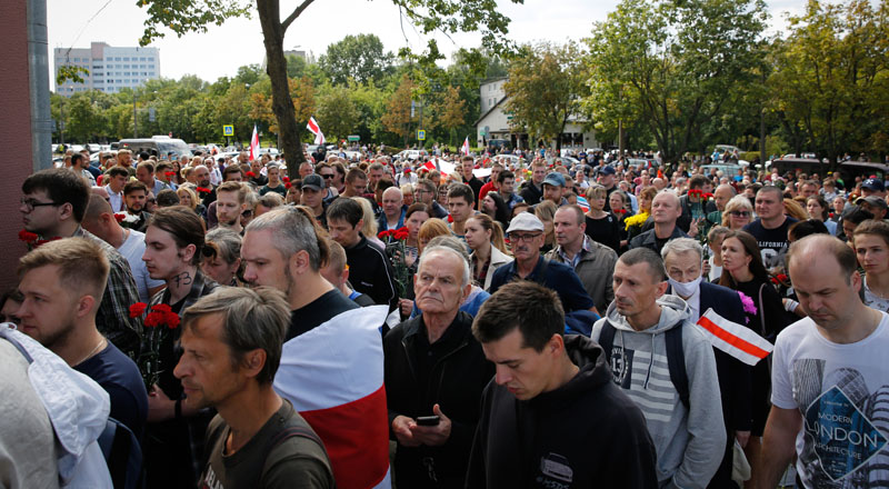 Šeštadienį Minske tūkstančiai žmonių atsisveikino su Aliaksandru Taraikovskiu, žuvusiu naktį į rugpjūčio 11-ąją per protesto akciją įvykus susirėmimui su Baltarusijos pareigūnais, praneša „Interfax“.