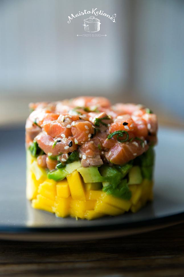 Lašišos tartaras su avokadu ir mangu