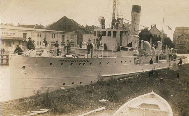 KARO LAIVAS "Antanas Smetona" 1935 m. Klaipėdoje, Danės upėje, remonto metu. Laivo bocmano Kazio RUŠINO archyvo nuotr.