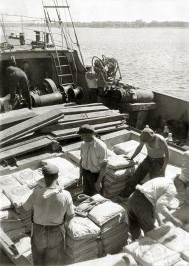 "KRETINGA" gabena cemento krovinį. 1937-1938 m. LVCA nuotr.