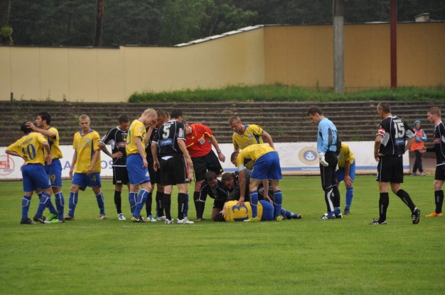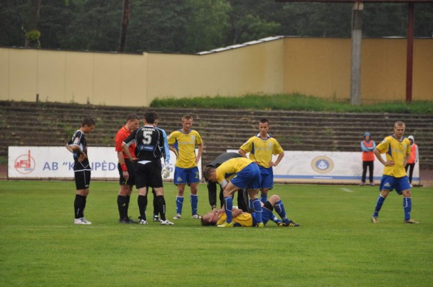 Šeštadienį Klaipėdos centriniame stadione vykusių Lietuvos futbolo A lygos rungtynių pradžia tarp Klaipėdos "Atlanto" ir Šiaulių "Šiaulių" privertė sukrusti ne tik uostamiesčio klubo prezidentą Vacį Lekevičių, bet ir visus futbolo sirgalius - netikėtai 7-ąją rungtynių minutę ant vejos išsitiesė ir purtytis pradėjo "Atlanto" ekipos žaidėjas Valdas Žalneravičius.