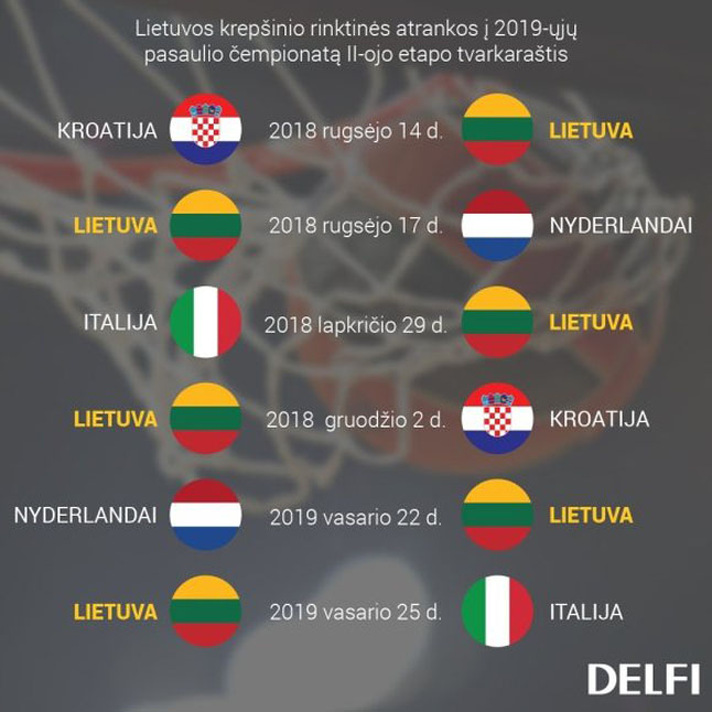Po draugiškų mačų lietuvių laukia du pasaulio čempionato atrankos mūšiai. Rugsėjo 14 d. penktadienį mūsiškiai susitiks su Kroatija, o rugsėjo 17 d., pirmadienį, „Siemens“ arenoje Lietuva priims Nyderlandų rinktinę.