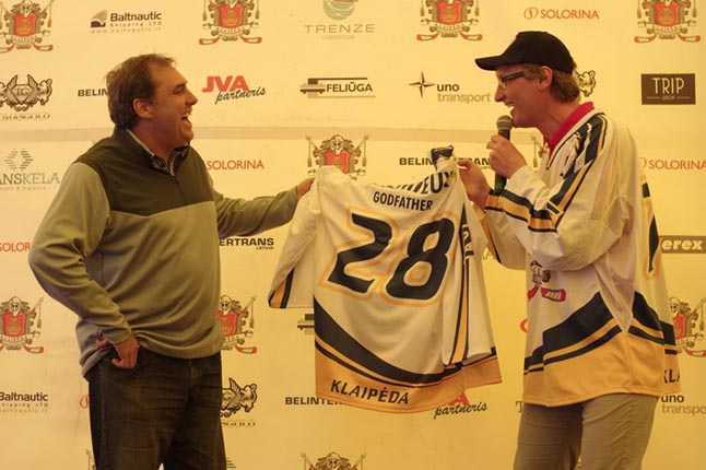KRIKŠTATĖVIS. Naujojo HC "Klaipėda" vaikų ledo ritulio klubo krikštatėviu tapo kanadietis Alainas Lemjė (Alain Lemieux, nuotraukoje kairėje). Jis yra legendinio Kanados ledo ritulininko Mario Lemjė (Mario Lemieux) brolis.