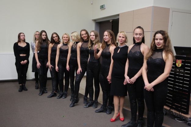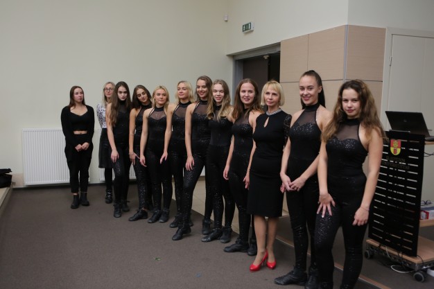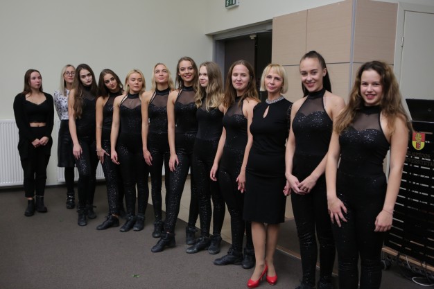 ŠOKĖJOS. Į renginį susirinkusius sveikino Bronelės Švitrienės Klaipėdos universiteto krepšinio palaikymo grupės šokėjos.