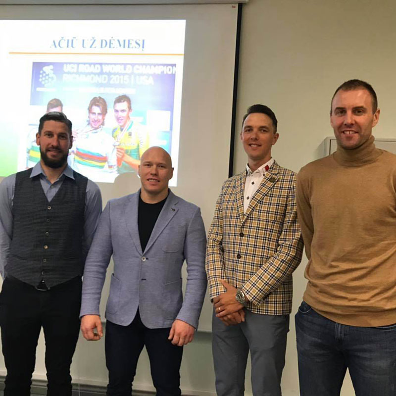 [CITATA]Ji pabrėžė, kad prieš kelias dienas magistro diplominius darbus KU apsigynė trys labai garsūs sportininkai - Europos čempionas, olimpinis prizininkas Aurimas Didžbalis, buvęs Lietuvos krepšinio rinktinės žaidėjas, pasaulio ir Europos krepšinio prizininkas, dabartinis "Neptūno" žaidėjas Tomas Delininkaitis ir Londono bei Rio de Žaneiro olimpinių žaidynių dalyvis, planetos čempionato prizininkas, prestižinių daugiadienių lenktynių "Giro d'Italia" ir "Tour de France" etapų nugalėtojas Ramūnas Navardauskas. Taip pat praėjusią savaitę bakalauro studijas KU baigė ir kitas garsus dviratininkas, olimpietis Gediminas Bagdonas.