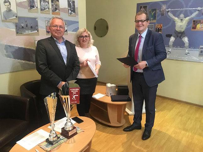 PADĖKA. Klaipėdos vicemeras Arvydas Cesiulis, Sporto ir kūno kultūros skyriaus vyr. specialistė Simona Skuodaitė ir žaidynėse Klaipėdos delegacijos vadovu buvęs Algirdas Vaicekauskas dėkojo Klaipėdos sportininkams už puikiai atliktą darbą.