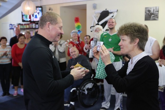 Tiek senjorai, tiek neįgalieji nuoširdžiai, kai kurie net su džiaugsmo ašaromis akyse, su Kalėdų Seneliu šoko, dainavo. Vėliau visi kartu sėdo prie vaišėmis nukrauto stalo.