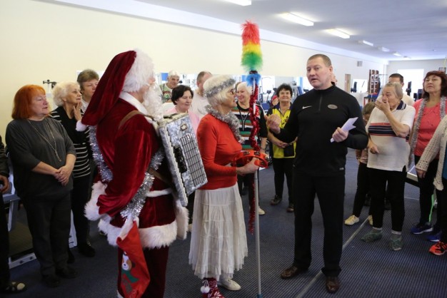 TRIJULĖ. Arūnas Jocys su Kalėdų Seneliu ir Snieguole neįgaliesiems ir senjorams surengė linksmą šventę.