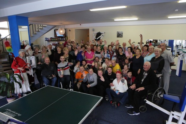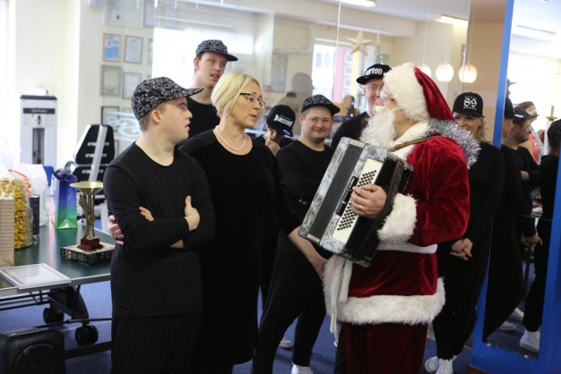 ŠOKO. Tiek senjorai, tiek neįgalieji nuoširdžiai, kai kurie net su džiaugsmo ašaromis akyse, su Kalėdų Seneliu šoko, dainavo. Vėliau visi kartu sėdo prie vaišėmis nukrauto stalo.