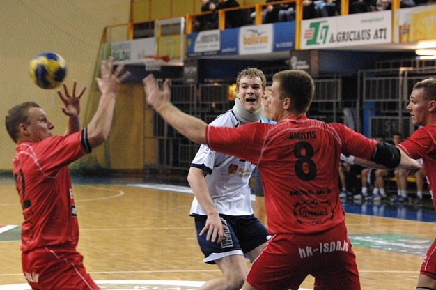 Klaipėdos "Žemaitijos dragūnas" savaitgalį iškovojo pergalę ir sužaidė lygiosiomis, tačiau jų džiaugsmą aptemdė skaudžios traumos: Arūnui Šrederiui lūžo nosis, o Remigijui Vaičikauskui išniro piršto kapsulė.