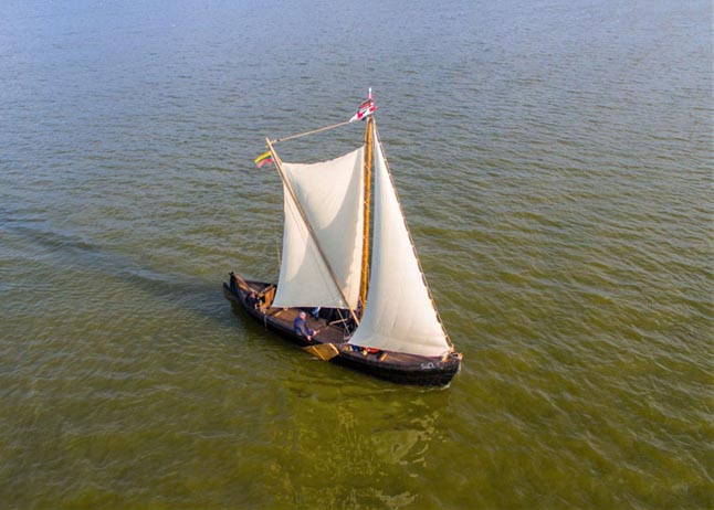 GRĮŽO. Atgimęs kurėnas šiemet jau dalyvavo tradicinėje plokščiadugnių burvalčių regatoje "Burpilis", Jūros šventės renginyje "Dangės flotilė". Kitais metais "SüD.1" švęs savo pastatymo 20-metį. Vykinto LAUKEVIČIAUS nuotr.