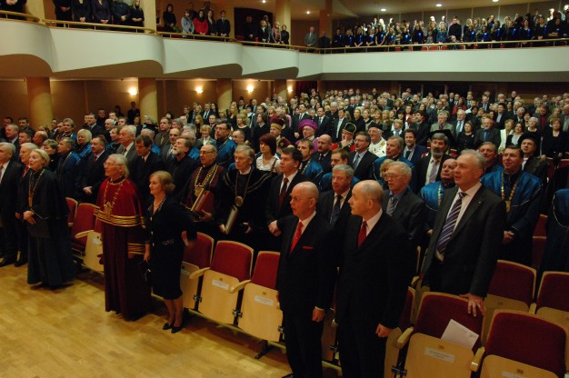 Popiet universiteto bendruomenė rinkosi Klaipėdos koncertų salėje. Iškilmingos ceremonijos metu V. Zatleras įnauguruotas KU garbės daktaru, pagerbti naujai įkurtam universitetui vadovavę rektoriai - profesoriai Donatas Švitra ir Stasys Vaitekūnas - bei pirmasis Senato pirmininkas docentas Aleksandras Žalys.