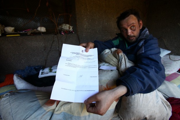 Pats benamis, jis yra vardu Egidijus, sakė anksčiau buvo apsistojęs apleistame pastate, bet kartą ten užsuko įkaušusi jaunuolių kompanija ir jį gerokai aptalžė - kaip įrodymą jis iš po antklodės ištraukė sužeistą koją, parodė pareiškimą policijai, pagal kurį pradėtas ikiteisminis tyrimas dėl sveikatos sutrikdymo.