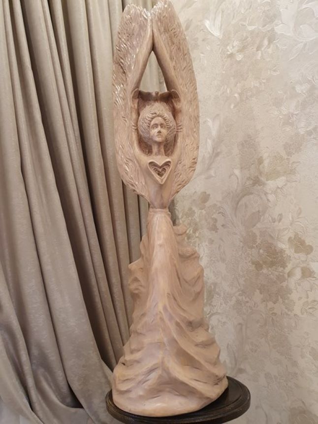 „Mano kūriniai dvasinės tematikos, susiję su tikėjimu, – aiškina moteris. – Mano kūrybos dvasia – tai grožis, artumas: motina su kūdikiu, vyras su moterimi šokio judesy, angelai.“