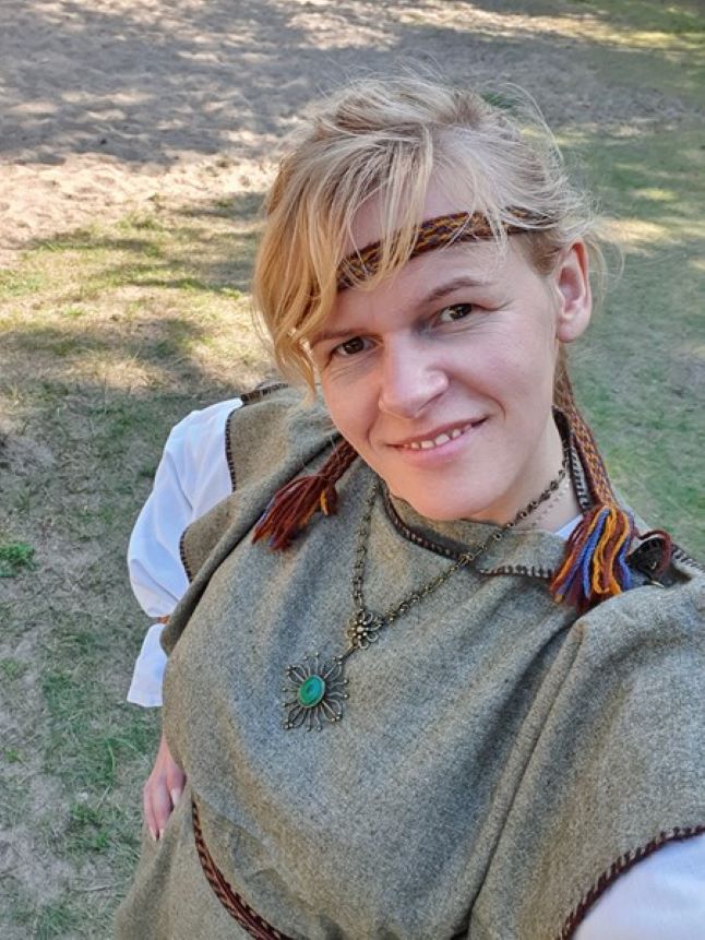 Žaneta Šimkuvienė – tautodailininkė, kurianti sakralines skulptūras. Šio meno paslaptis perėmė iš savo vyro kryždirbio Aurimo Šimkaus.