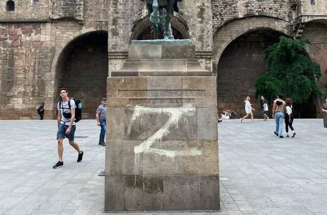 Barselonos policija sulaikė rusą, ant istorinių paminklų tepliojusį Z ir V simbolius