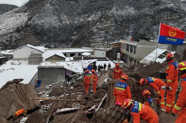 Vietos transliuotojo socialiniuose tinkluose paviešintoje filmuotoje medžiagoje matyti oranžinius kombinezonus ir šalmus dėvintys avarijų likvidavimo darbuotojai, besikapstantys mūro krūvose tarp milžiniškų plonu sniego sluoksniu padengtų kalnų.