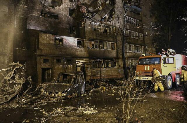 Kovinis bombonešis pirmadienį netrukus po starto nukrito prie pat devynių aukštų gyvenamojo namo, kurio dalis užsiliepsnojo.