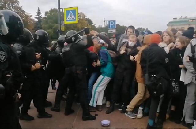 Buvusioje Rusijos imperijos sostinėje Sankt Peterburge AFP žurnalistai matė, kaip policija apsupo nedidelę protestuotojų grupę ir vieną po kito sulaikė demonstrantus. Protestuotojai skandavo „Mobilizacijai ne!“.