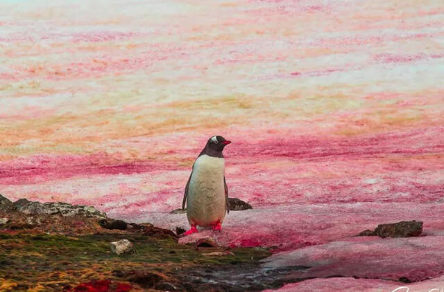 „Ši spalva atsiranda dėl mikroskopinių žalių vienaląsčių dumblių vystymosi sniege“, – paaiškino Nacionalinis Antarktidos tyrimų centras.