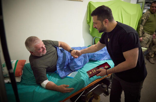 V. Zelenskis įteikė valstybinius apdovanojimus medikams ir sužeistam gynėjui.
