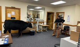 Pabėgusi karvė įsiveržė į gydytojo kabinetą