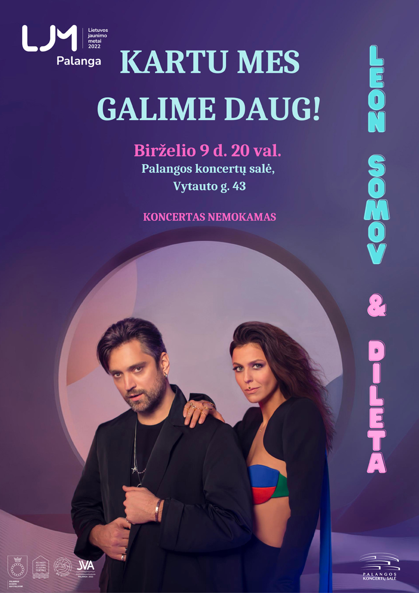 Birželio 9 d. 20 val. Lietuvos jaunimas ir visi, kurie jauni širdyje, kviečiami į siautulingą, gerų emocijų ir įspūdžių kupiną, nemokamą Leon Somov & Dileta koncertą Palangos koncertų salėje.