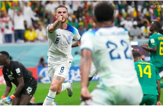 Antroje rungtynių pusėje 21 metų "Arsenal" vidurio gynėjas Bukayo Saka įveikė Senegalą. Anglijos ir Prancūzijos rungtynės bus žaidžiamos šeštadienį.