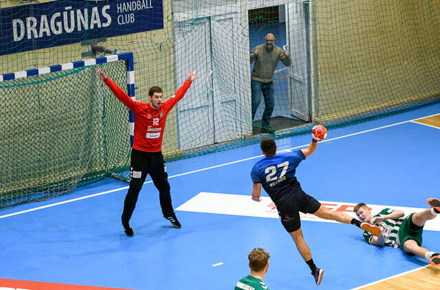 Pirmąją dvikovą namuose „Dragūnas“ laimėjo 7 įvarčių skirtumu - 32:25, o išvykoje pergalę išplėšė 10 įvarčių skirtumu - 36:26. Taigi, „Dragūno“ kišenėje - kelialapis į LRF taurės turnyro pusfinalį.
