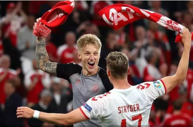 Paskutinėje vietoje buvę danai pirmieji pelnė įvartį: 38 min. puikiu smūgiu pasižymėjo Mikkelas Damsgaardas.