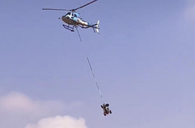 “Deja, nutinka kartais taip, kad ir kaip norėtum, bet problemos išspręsti negali. Lūžo priekinės pakabos dalis, kurios nei turiu nei negaliu pakeisti dykumoje. Man viskas gerai. Labai labai ačiū visiems už palaikymą!“ – savo facebook paskyroje rašė L. Kancius ir įkėlė video įrašą, kuriame matyti, kaip sraigtasparnis jo keturratį, pakabintą ant specialios virvės, išgabena iš Dakaro ralio trasos.
