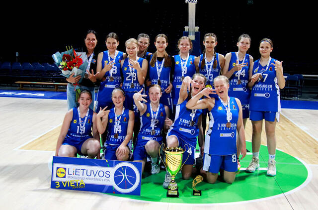 Klaipėdos Vlado Knašiaus krepšinio mokyklos atstovės, treniruojamos Ramunės Kumpienės, iškovojo Lietuvos moksleivių krepšinio lygos (MKL) mergaičių U14 A diviziono bronzos medalius.