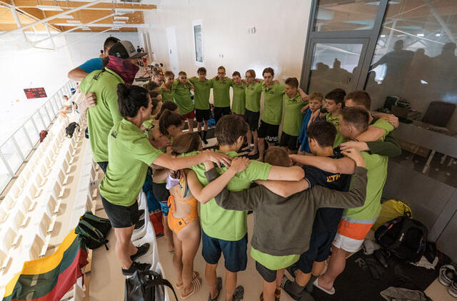 SUJUDIMAS. Klaipėdos baseine netrūko veiksmo - dėl Šiaurės šalių amžiaus grupių plaukimo čempionato nugalėtojų taurės kovojo Danijos, Suomijos, Norvegijos, Estijos, Švedijos, Islandijos, Farerų salų, Latvijos ir Lietuvos plaukikai. Tautvydo JUKNEVIČIAUS nuotr.