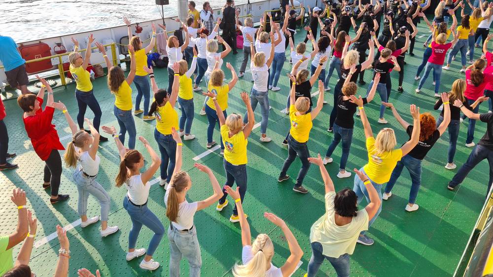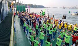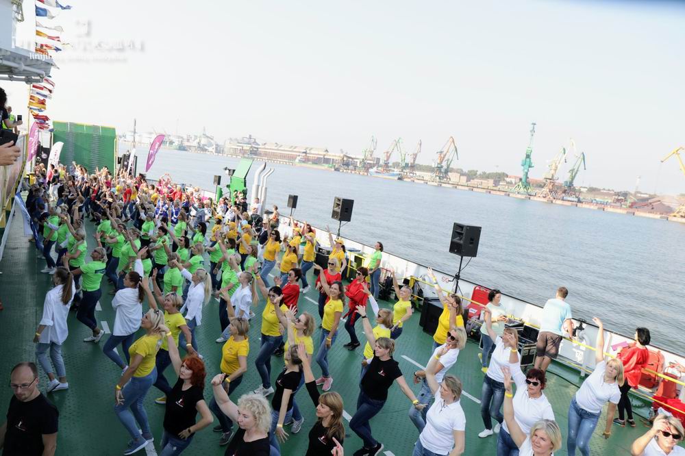 Jos pasidžiaugė, kad vaizdas, kai AB "Smiltynės perkėlos" kelte šoko 300 šokėjų, buvo išties įspūdingas.