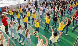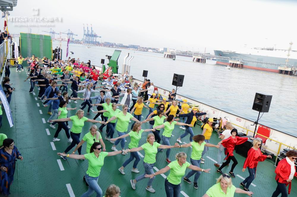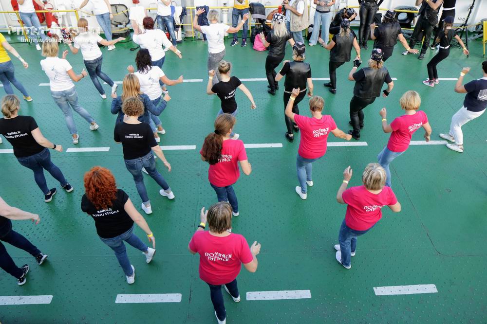 VANDENS APSUPTYJE. Ant Kuršių marių "Smiltynės perkėlos" kelte "Linedance marių fiesta" tęsėsi apie 3 valandas. Organizatorių nuotr.