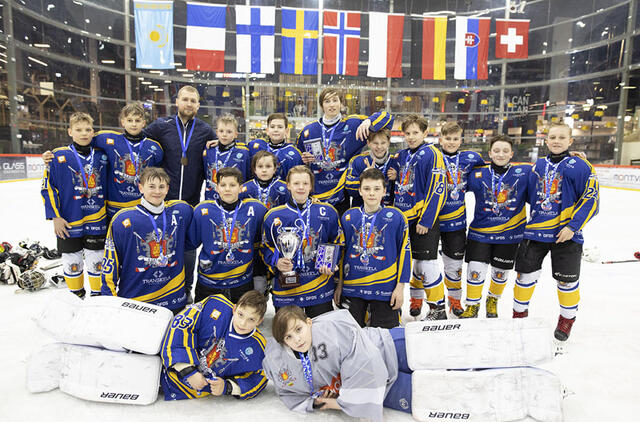 © Hockey.lt nuotr. ŠAUNUOLIAI. Štai šie HC „Klaipėda-1“ komandos atstovai iškovojo Lietuvos trylikamečių ledo ritulio vicečempionų taurę, sidabro medalius ir dar du svarbius individualius prizus.